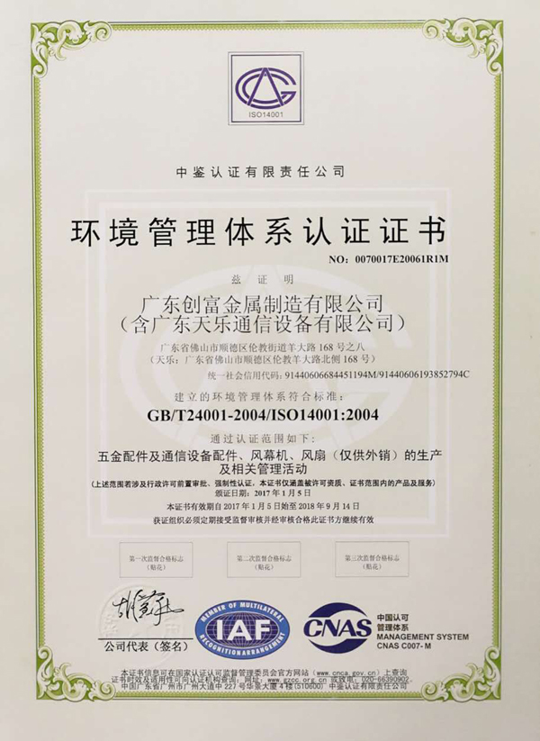 環(huán)境管理體系認(rèn)證證書